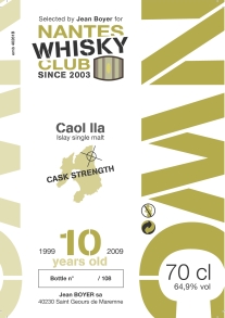 Caol Ila 10 yo 1999/2009 (64.9%, Jean Boyer For Nantes Whisky Club, Bourbon Barrel, 108 Btl)